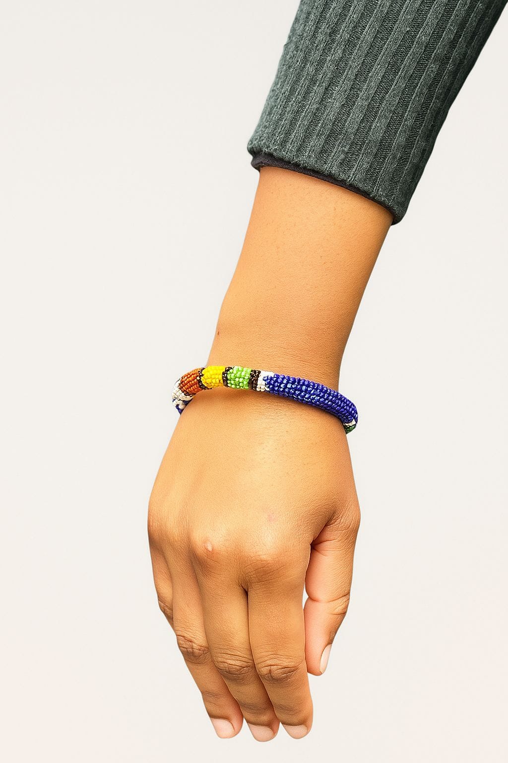 A small multicolored beaded bracelet inspired by the art of African tradition.